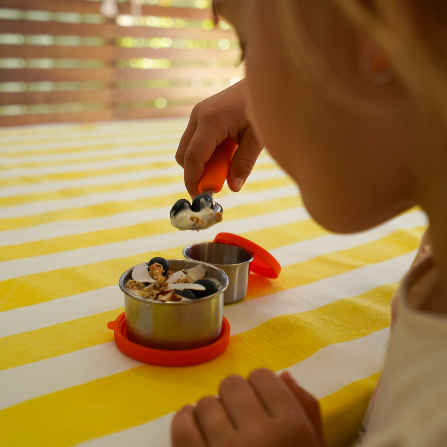 Great sized snack containers. I can see us using these a lot. Fits in the lunch box I purchased. Great for separating food/dips/olives. Love that they are stainless steel as avoiding plastic food containers is important for our family.