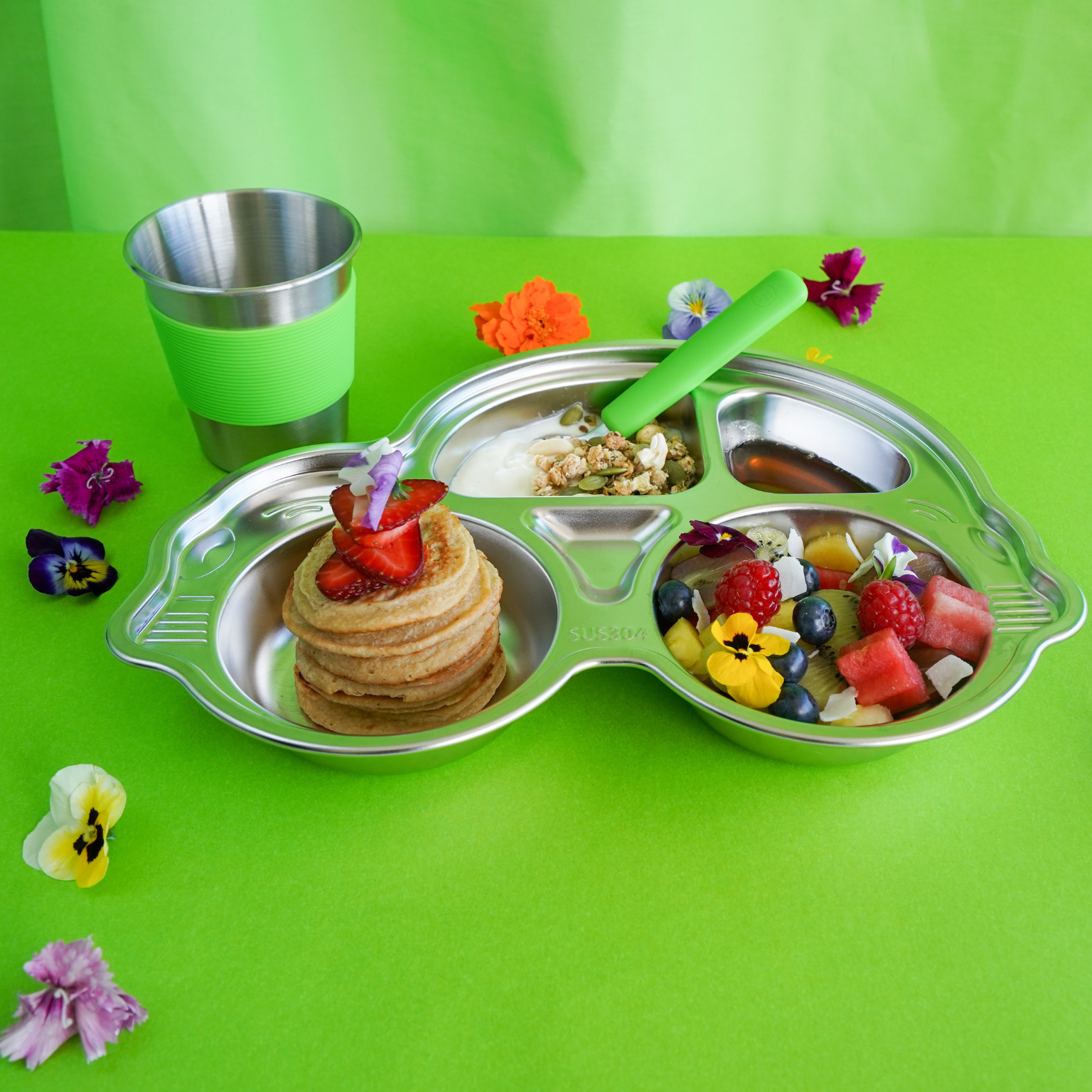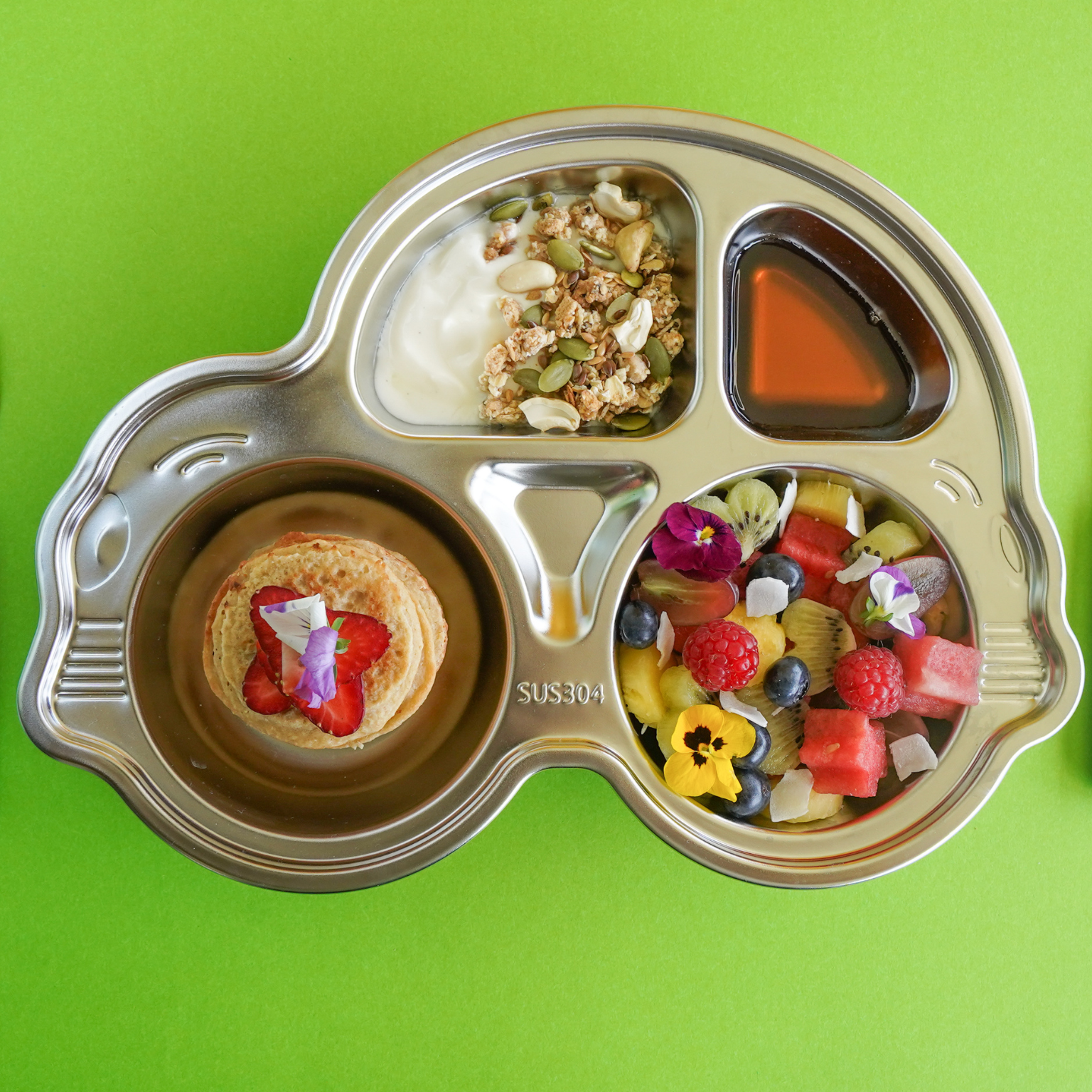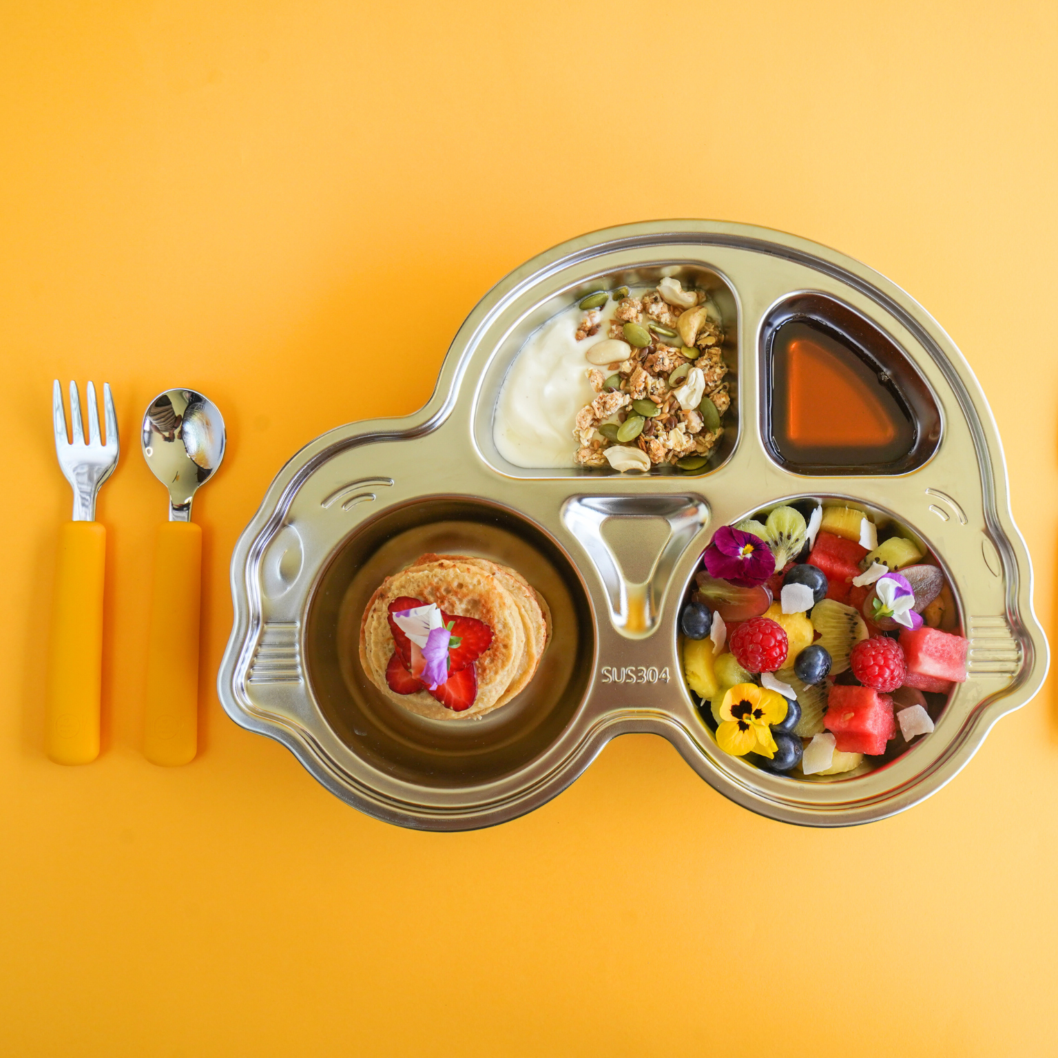 Love this fun Stainless Steel Car Section Plate! So handy to use with the different sized sections, especially with a toddler eating a range of foods. The high quality is amazing and mine still looks new after a year of use. You won’t be disappointed!