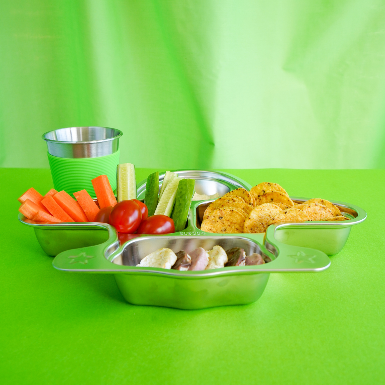 My 6 year old just loves this plate! He enjoys preparing what will go in each slot and must use it whenever he is home from school. The cutest part is when he flies it from the bench to the table to enjoy :) and I’m loving the low tox option! It’s a win/win! Thank you :)