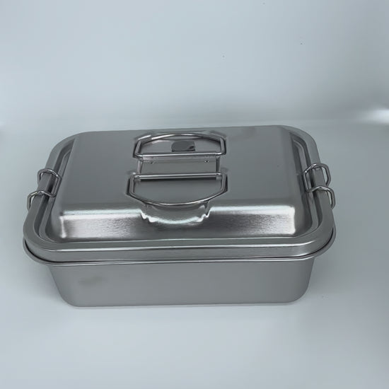 I'm loving our stainless steel lunchbox even more than I thought I would. My 4yo figured out how to clip and unclip the lid in about 3 seconds and he's so proud of himself. But the best part is how versatile it is. You can take out the top tray or leave it in, and we also got the stainless steel pots which we use for little snacks. This gives us endless options. The bottom tray is massive and would fit just about anything. Much better than our bento style lunch box from a different brand which is a little bit restrictive because all the foods have to be a particular size and shape. It's perfect and I'm expecting it to last us a very long time.